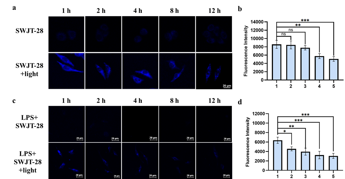图3.SWJT-28的在HeLa细胞和HT22细胞中的定时成像实验