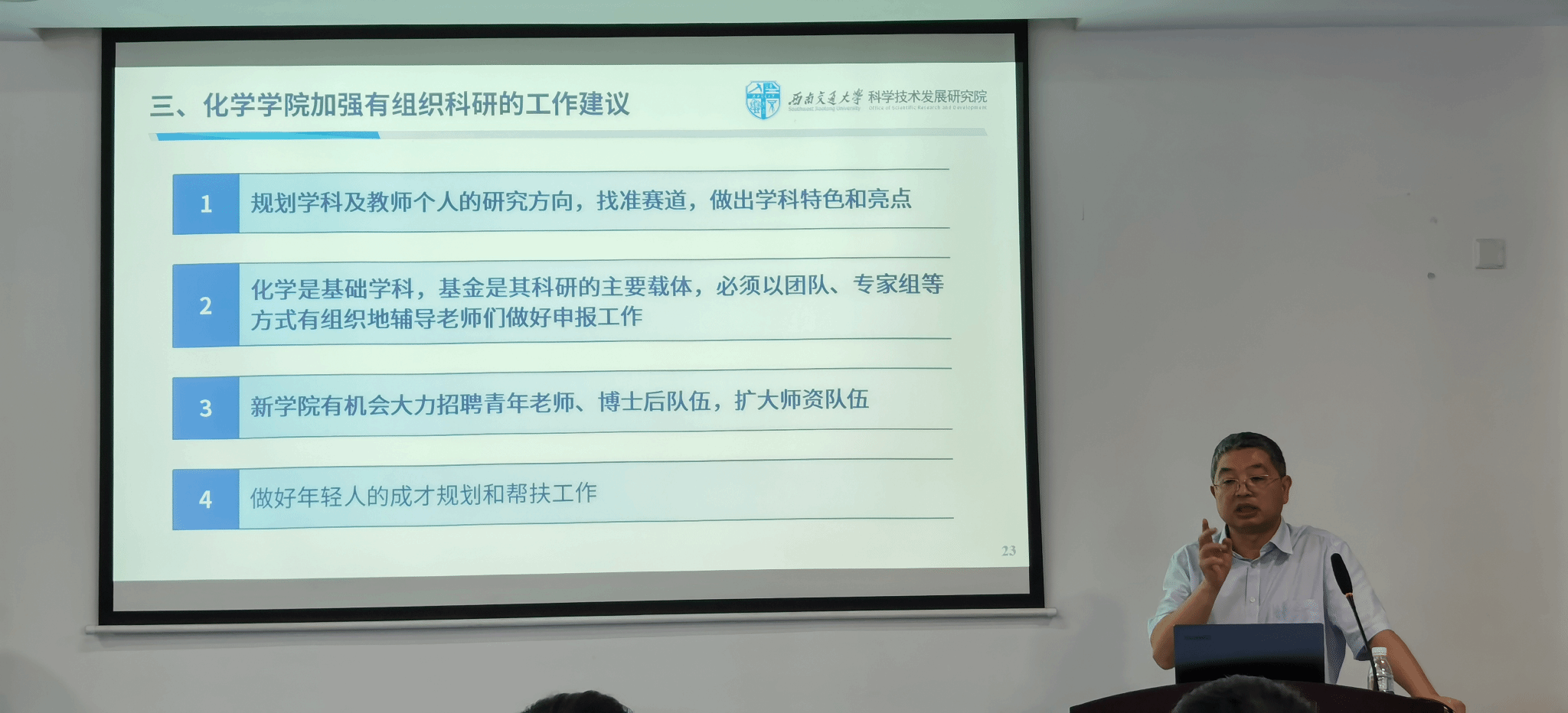 随后,周祚万院长介绍了kaiyun开云官方有组织科研推进工作思路:即《切实加强有组织科研 推进学院跨越式发展》。周祚万表示,王平院长的报告内容丰富、思路清晰、方法实用,对kaiyun开云官方的科研工作有很好的指导和启发作用。