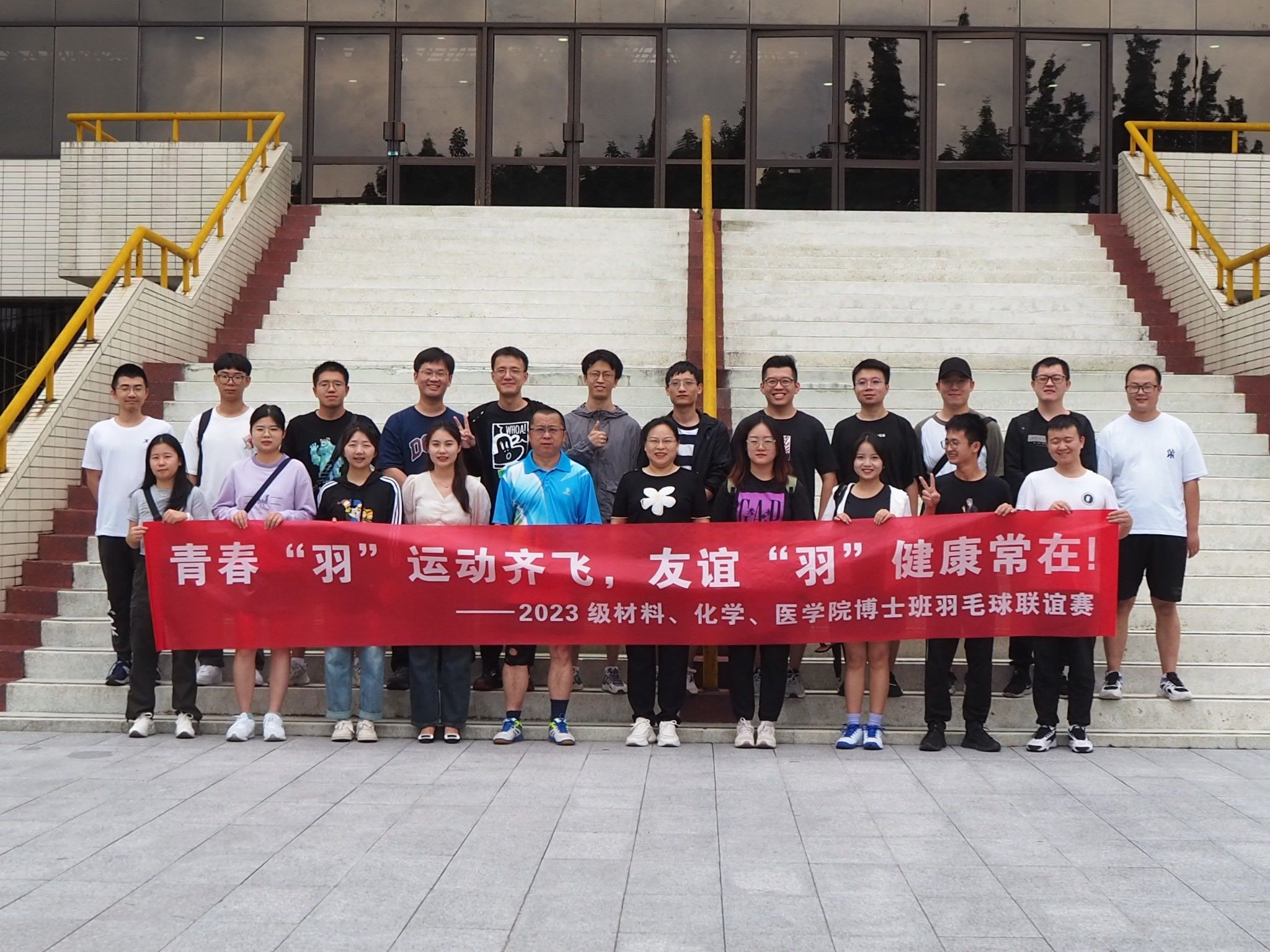 青春“羽”运动齐飞,友谊“羽”健康常在!为全面提高和发展博士生的综合素质,活跃科研文化生活,进一步增进同学们之间的友谊,同时培养博士生热爱体育的兴趣与爱好。2023年9月22日,kaiyun开云官方、材料学院和医学院在九里校区詹天佑体育馆,成功联合举办了2023级博士生羽毛球友谊赛。kaiyun开云官方党委书记李国芳、医学院副院长冷永祥教授、辅导员李清怡老师、罗丹老师观看了比赛。
