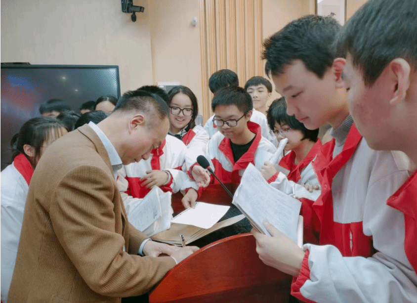 周祚万教授还与学生们进行了互动,解答了他们对绿色化学、高分子化学以及碳中和与环境保护等方面的疑问,他鼓励学生们要勇于探索科学世界,保持对知识的求知欲和好奇心。讲座不仅让学生们对高分子化学有了更深入的了解,也激发了他们探索科学世界的兴趣和热情。报告会后,许多同学们踊跃向周祚万教授提问交流,请周祚万教授签名,并合影留念,表达对前沿科学的热爱和向往。