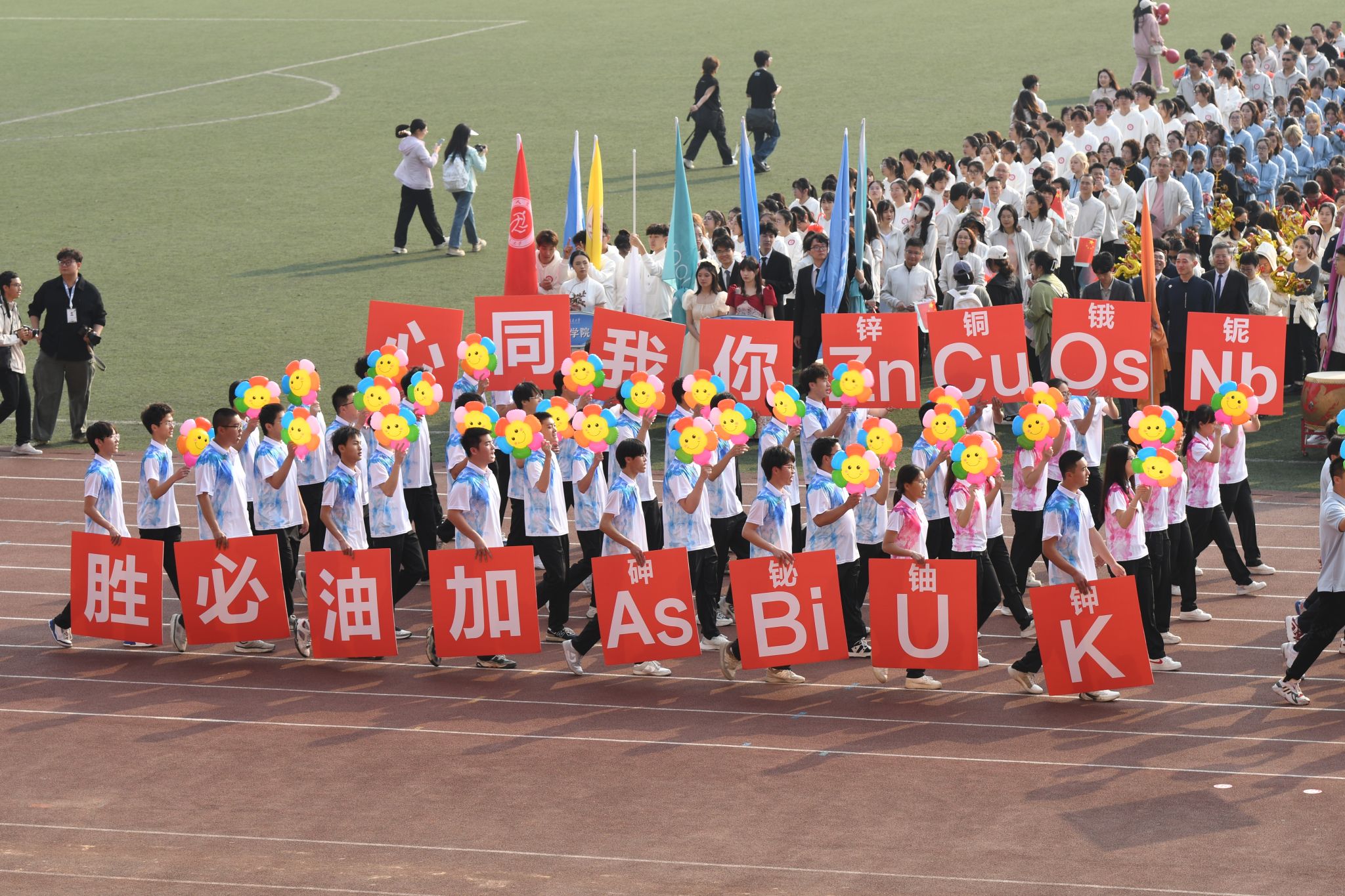 4月12日上午,在犀浦校区北区田径场,校运会正式开幕,kaiyun开云官方党委书记李国芳、院长周祚万带领学院师生方阵喊出了“化样年华 求实创新 共谱化章 你我同心”的嘹亮口号,同学们举出了以化学元素谐音设计的“铌(Nb)锇(Os) 铜(Cu)锌(Zn)——你我同心”、“钾(K)铀(U)铋(Bi)砷(As)——加油必胜”的创意宣传板。学院师生用灿烂的微笑表达着对这场体育盛会的期待与热爱,他们自信的步伐必将带领kaiyun开云官方迈向崭新的未来!