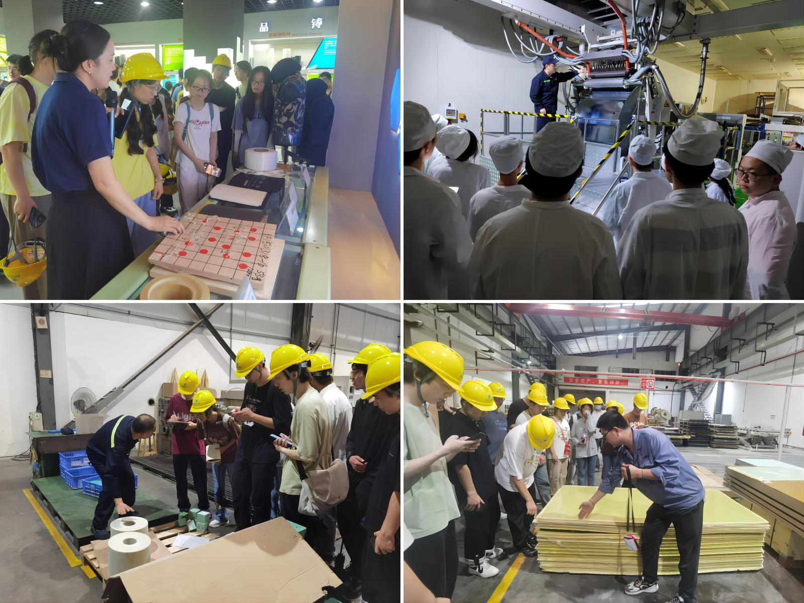 学生们还参观了公司的聚酯薄膜产品生产线。聚酯薄膜作为现代工业中的重要材料,广泛应用于包装、电子、建筑等多个领域。在车间里,学生们不仅学习了聚丙烯薄膜的生产工艺,还亲自体验了产品的质量检测流程,加深了对产品性能的理解。同时,学生们亲眼见证了从模具设计到产品成型的全过程,对模塑工艺和模具设计有了更深入的了解。
