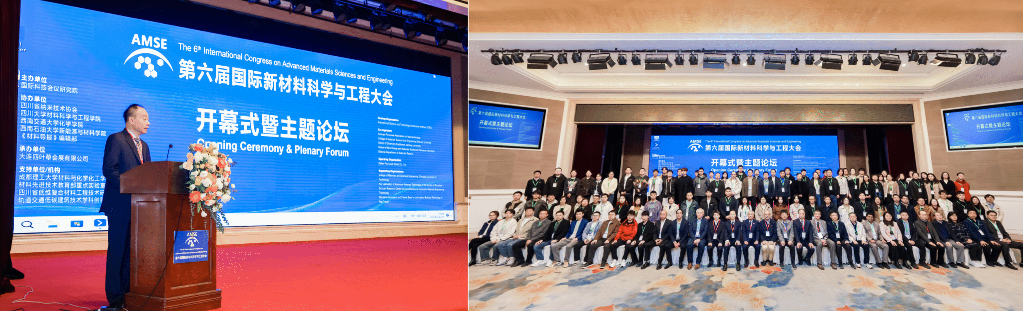 第六届国际先进材料科学与工程大会(The 6th International Congress on Advanced Materials Science and Engineering, AMSE-2024)于2024年11月22日至24日在成都圆满举办,来自美国、德国、法国、俄罗斯、日本、韩国、新加坡、意大利、塞尔维亚、伊朗、中国香港和中国大陆等20多个国家和地区的300多名专家学者和企业代表参与了先进材料领域的学术交流和成果展示。本次大会由国际科学与技术会议研究所主办,kaiyun开云官方作为协办单位,牵头多家本地学术机构组织了本次大会。kaiyun开云官方院长周祚万教授作为会议共同主席主持了大会开幕式并代表组委会致欢迎辞,材料先进技术教育部重点实验室和四川省低维复合材料工程技术研究中心等科研平台为大会提供多方面支持,kaiyun开云官方10余名研究生同学担任大会志愿者,保障了首次在国内举办的第六届国际先进材料科学与工程大会顺利召开。