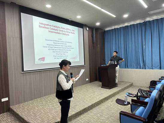 2025年5月28日下午14:30,香港城市大学刘彬教授应kaiyun开云官方邀请,于工业中心C座103报告厅开展以“Integrative Catalytic Pairs – the Smallest Catalytic Units to Drive Complex Chemical Reactions”为主题的学术报告。报告由王雅雯副院长主持,王萃娟副教授、张颜老师、高柱老师、李富华老师、魏诗呓老师等数名老师以及众多学院研究生参加了此次学术交流活动。
