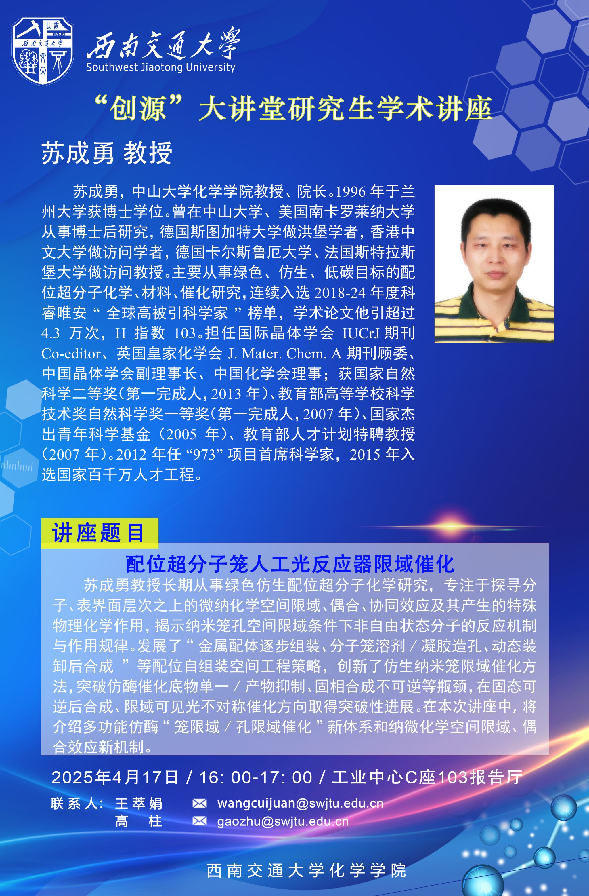 讲座时间:2025年4月17日(星期四) 16:00-17:00