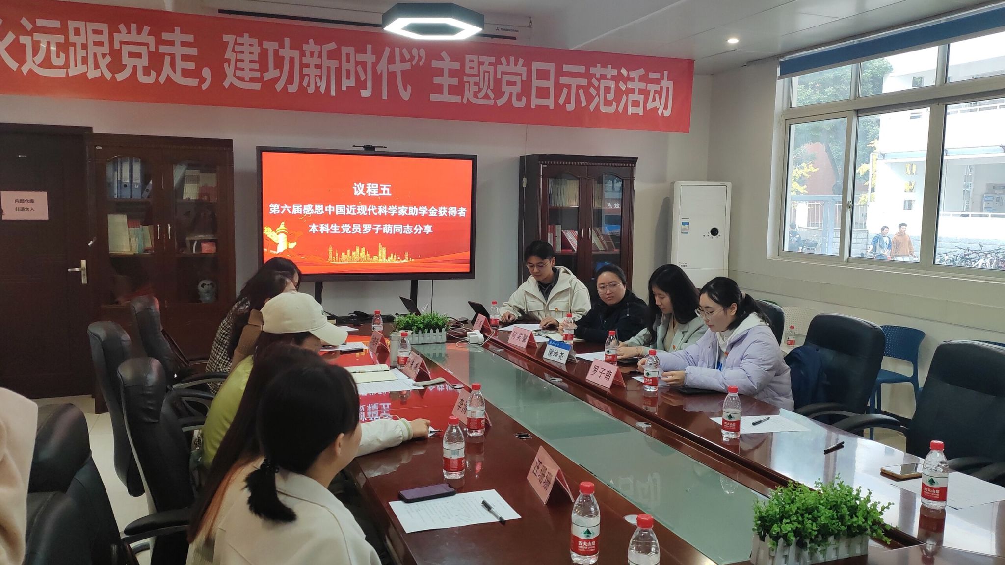 为传承弘扬科学家精神,加强学院党员同志对我校的认同感和对优秀科研工作者的知悉度,本科生第一党支部策划开展了“爱国科学家故事分享”环节,通过李威同志讲述优秀科学家校友的科研成就,参会同学们回答科学家的名字并简述其奋斗故事的形式开展。现场气氛热烈,学院党员同志表示将坚持向优秀看齐,发挥学科优势,在科创中建功立业,接力我国科学事业。