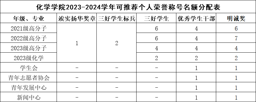 学院个人荣誉称号、集体荣誉称号名额分配如下: