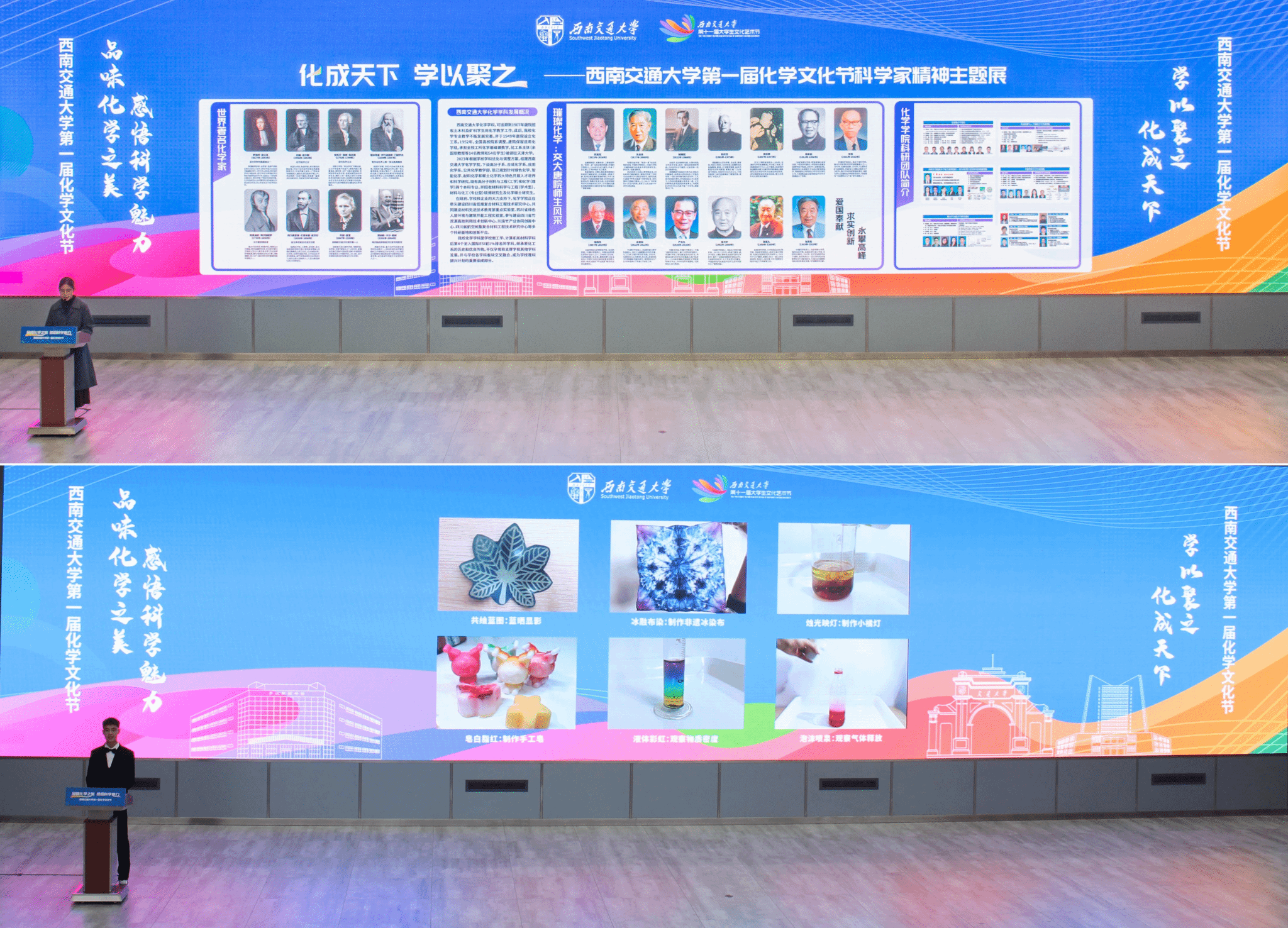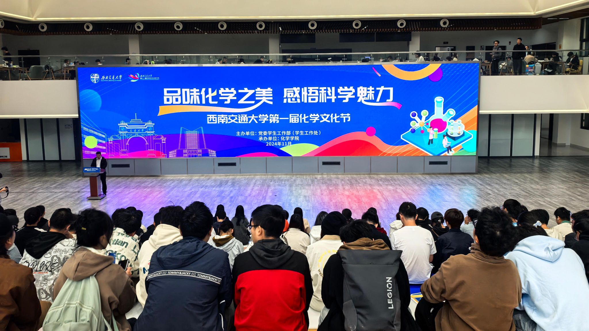 2024年11月7日下午,由党委学生工作部(学生工作处)主办,kaiyun开云官方承办的“品味化学之美,感悟科学魅力”kaiyun开云官方第一届化学文化节在犀浦校区三号教学楼隆重举办。现场通过化学科学家精神展览、优秀摄影作品展览、趣味实验体验、化学知识竞答等形式,深入挖掘化学学科蕴含的美育价值与功能,引导交大师生感悟化学之美,本次活动吸引了600余名师生热情参与,共同体验这场充满科学精神与艺术气息的化学盛宴,为我校推动形成热爱科学、崇尚科学的校园风尚提供了良好助力。