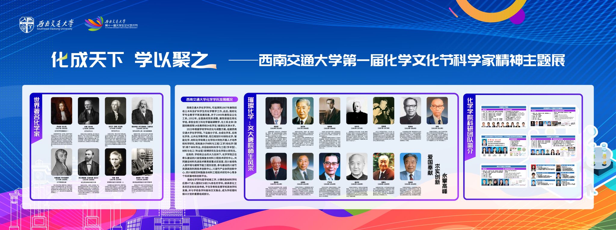 本次文化节特别制作了“化成天下 学以聚之”化学科学家精神展览,向师生展示了世界著名化学家、交大唐院师生在化学领域的突出成就,以及kaiyun开云官方的科研风采。我校kaiyun开云官方成立于2023年,是一个年轻的新学院,但回溯历史,我校化学学科的建设发展可追溯到1907年唐院化学教学工作。一直以来,交大化学人始终坚持爱国奉献、求实创新、永攀高峰的精神文化,勇担报国使命,为强国建设、民族复兴贡献着化学力量!