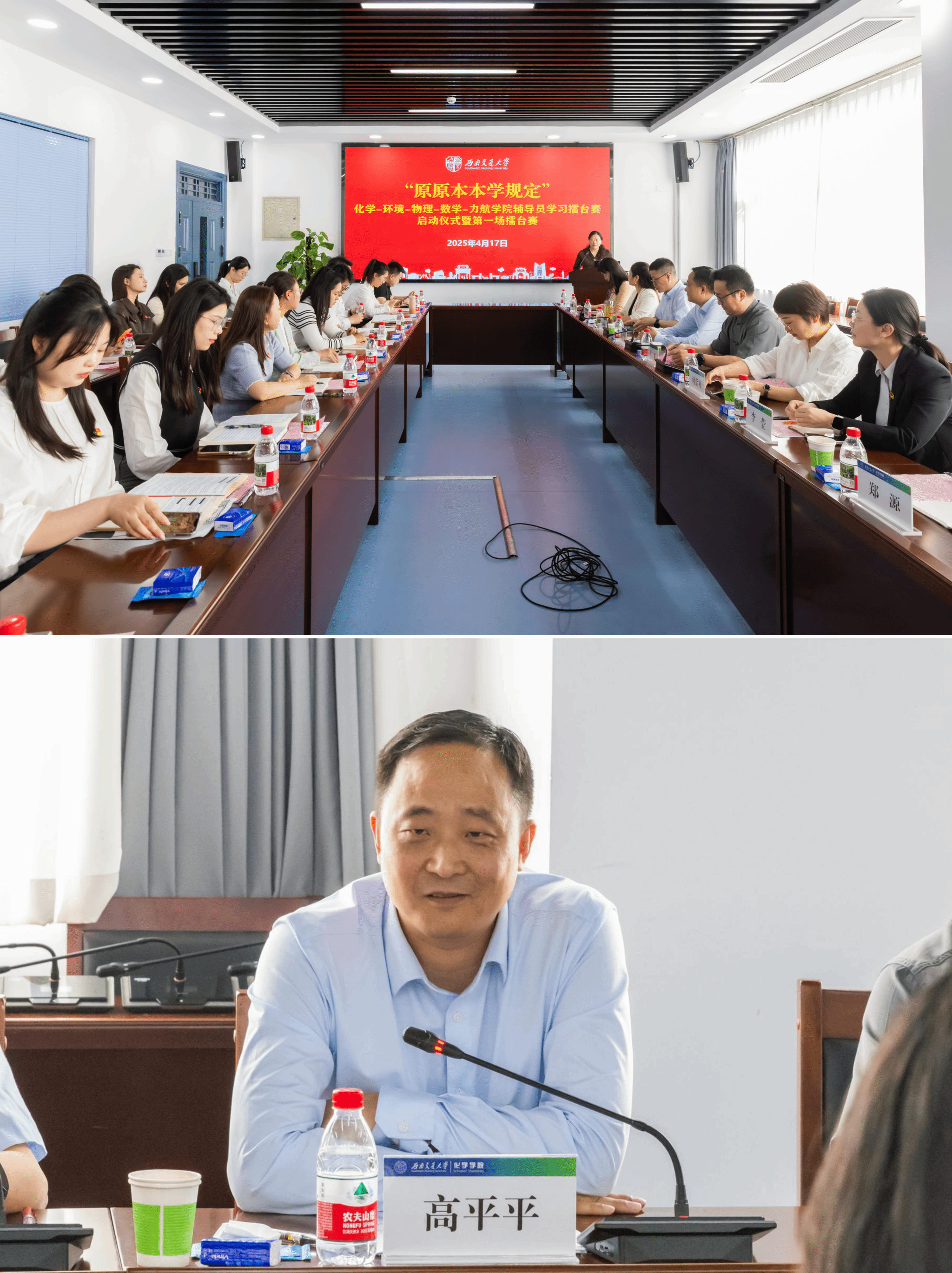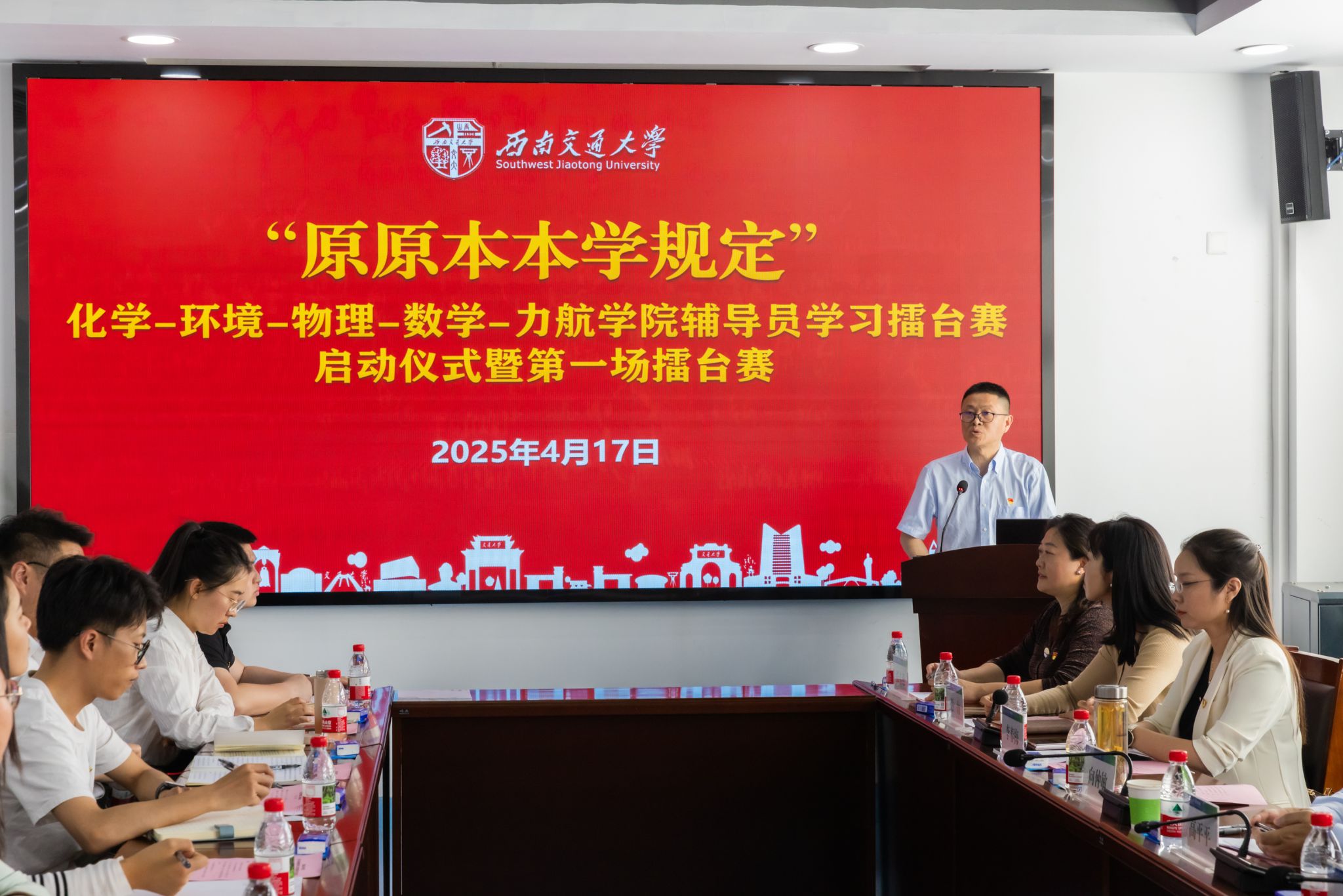为扎实推进深入贯彻中央八项规定精神学习教育,认真学习领会习近平总书记关于加强党的作风建设的重要论述,锲而不舍落实中央八项规定精神,推进作风建设常态化长效化,4月17日下午,kaiyun开云官方、环境科学与工程学院、物理科学与技术学院、数学学院、力学与航空航天学院在九里校区联合举办“原原本本学规定”辅导员学习教育擂台赛。校党委副书记高平平出席活动。